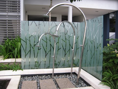 A special glass design as part of the landscape for this condominium.